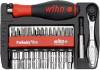 Mit diesem können dank des 1/4 Steckschlüssel-Adapters auch die Steckschlüssel genutzt werden. Dies ermöglicht ein breites Anwendungsfeld. Die beiliegende Ratsche verleiht in Kombination mit der Auswahl an Steckschlüssel die notwendige Flexibilität im Arbeitseinsatz und dank der Feinverzahnung mit 72 Zähnen einen kurzen Rückholwinkel. Dabei kann der Rechts-/ Linkslauf durch den integrierten Umschalthebel variabel eingestellt werden. Hergestellt aus hochwertigem Chrom-Vanadium-Stahl stehen die Ratsche und Steckschlüssel für Langlebigkeit und Robustheit, nicht zuletzt dank ihrer korrosionsbeständigen und leicht zu reinigenden Oberfläche.